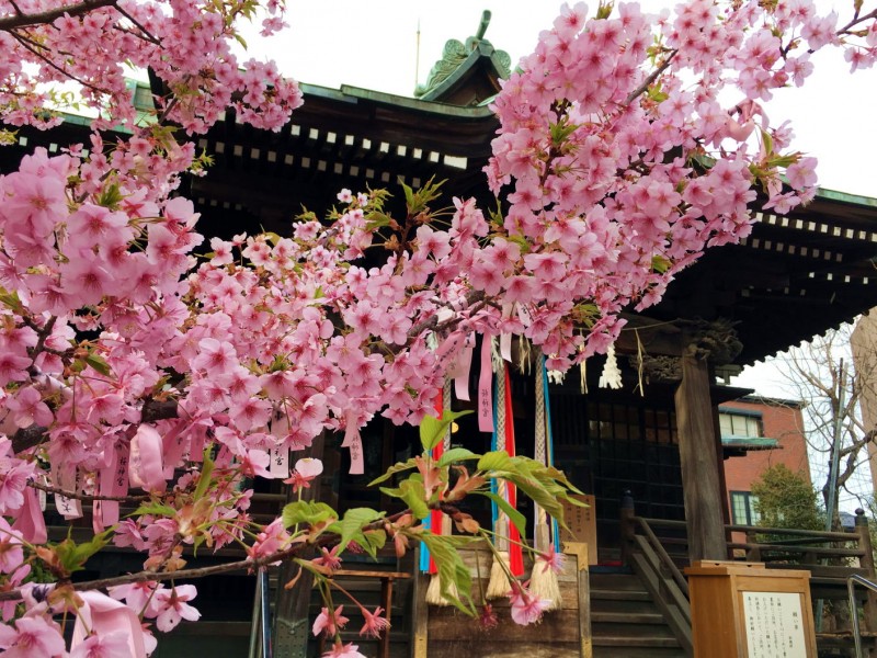 伊豆半島で2月に一足早く咲くことで有名な河津桜という種類の桜が境内に植えられています。